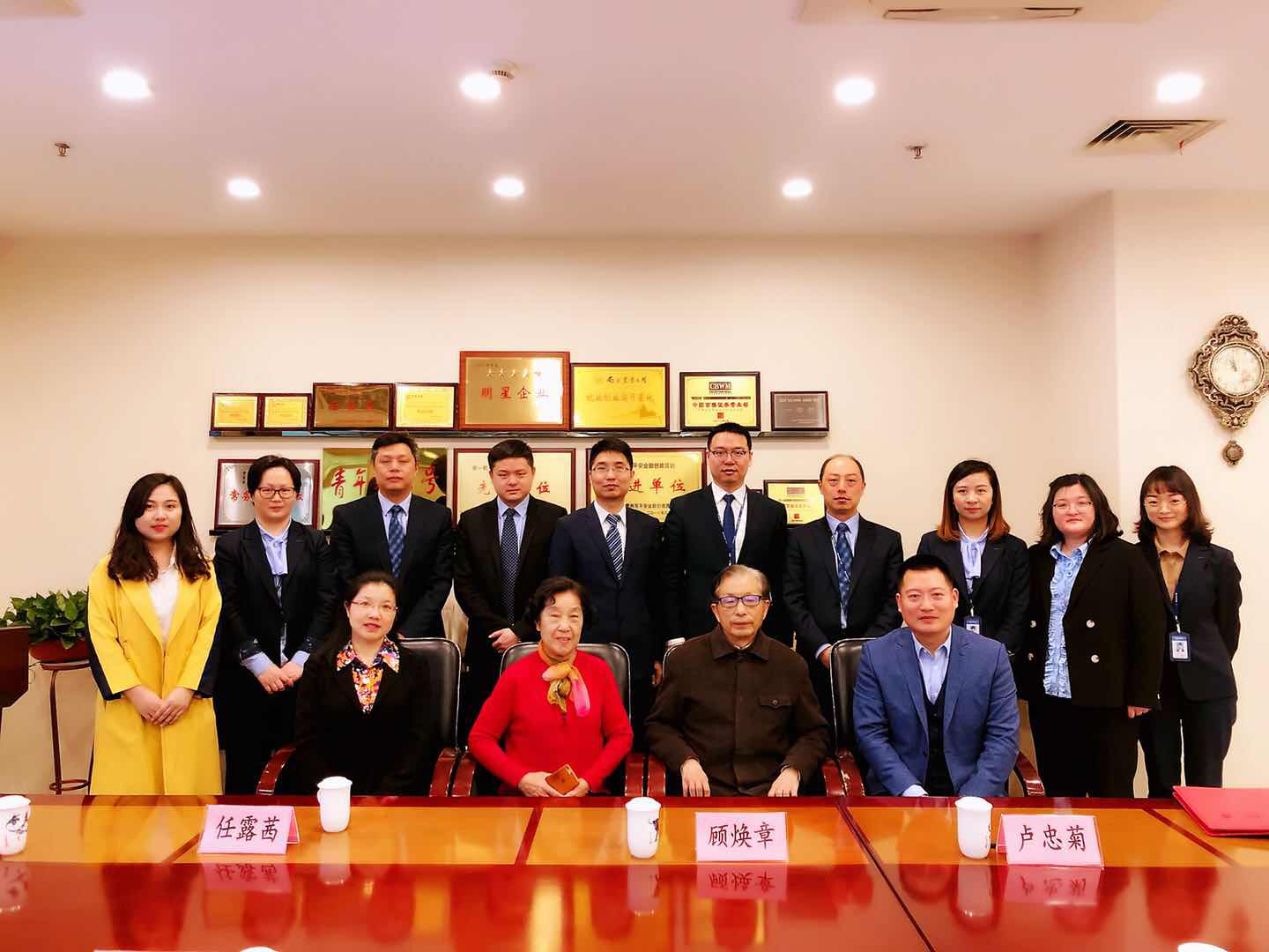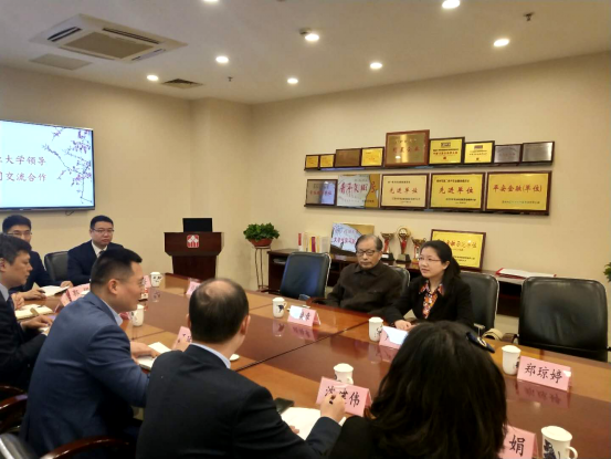 在江苏金坛投资控股有限公司,史荣生董事长对经管院一行表示热烈欢迎,介绍了单位发展概况和未来战略举措。卢忠菊介绍了学校“1235”发展战略、学院发展概况、人才培养创新举措和经管院毕业生总体情况。顾焕章教授表示,以签约授牌为新起点,希望两家单位深入合作,为师生多提供实习实践实训平台,为金坛控股推荐更多优秀毕业生,携手努力,协同发展。