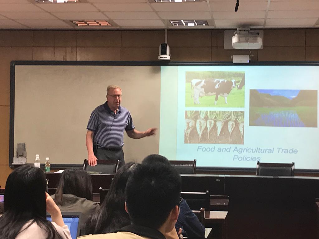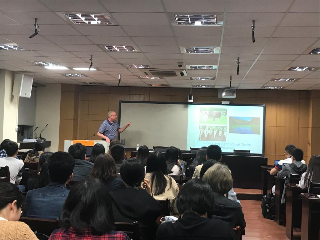 4月18日晚上,美国宾夕法尼亚州立大学David Abler教授应邀来我院为农林经济管理本科生作题为“Food and Agricultural Trade Policies”的学术报告,此次报告主题涉及农业领域一系列重要问题,吸引了众多同学前来旁听。报告由副院长林光华教授主持。