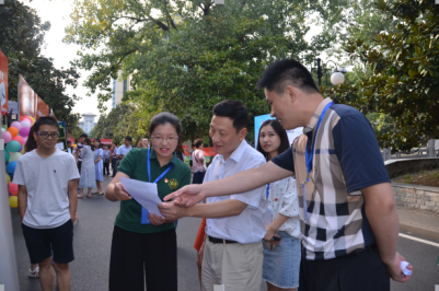 新生在展架上签名留言,表达对未来的憧憬与期盼,并同家长合影留念