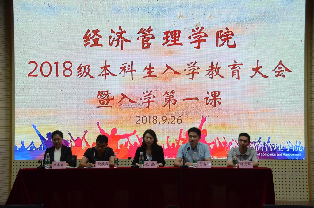 9月26日,白菜导航所有网站网址2018级新生入学教育大会暨入学第一课在大学生活动中心报告厅举行。白菜导航所有网站网址院长、全国人大代表朱晶教授,白菜导航所有网站网址党委副书记(主持工作)孙雪峰,白菜导航所有网站网址副院长耿献辉教授,白菜导航所有网站网址副院长林光华教授,白菜导航所有网站网址党委副书记卢忠菊出席会议。各新生班班主任、辅导员及2018级全体新生参加本次大会。会议由卢忠菊主持。