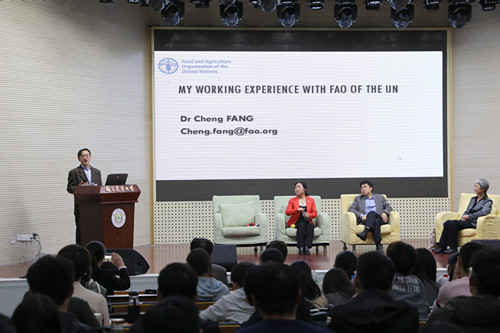 方成介绍了联合国粮食及农业组织(FAO)的构架、主要工作职能,以及他在FAO任职16年来的心得体会。他鼓励青年学生要努力学习,积极争取前往国际组织实习和工作的机会,日常要注重培养自身的创新能力、协调能力及管理能力,并介绍了FAO实习的岗位信息。张林秀从研究经历、国外经历以及现在工作三个方面做精彩分享。她勉励在场学生要热爱自己的祖国,要扎根所在的领域,坚持不懈,终会有收获。万广华殷切希望学弟学妹们:要爱国要有梦想;要早作准备;做人比做事更重要;做好本职工作。分享会上,三位校友还分别谈了他们眼中优秀学生的核心素质和能力。
