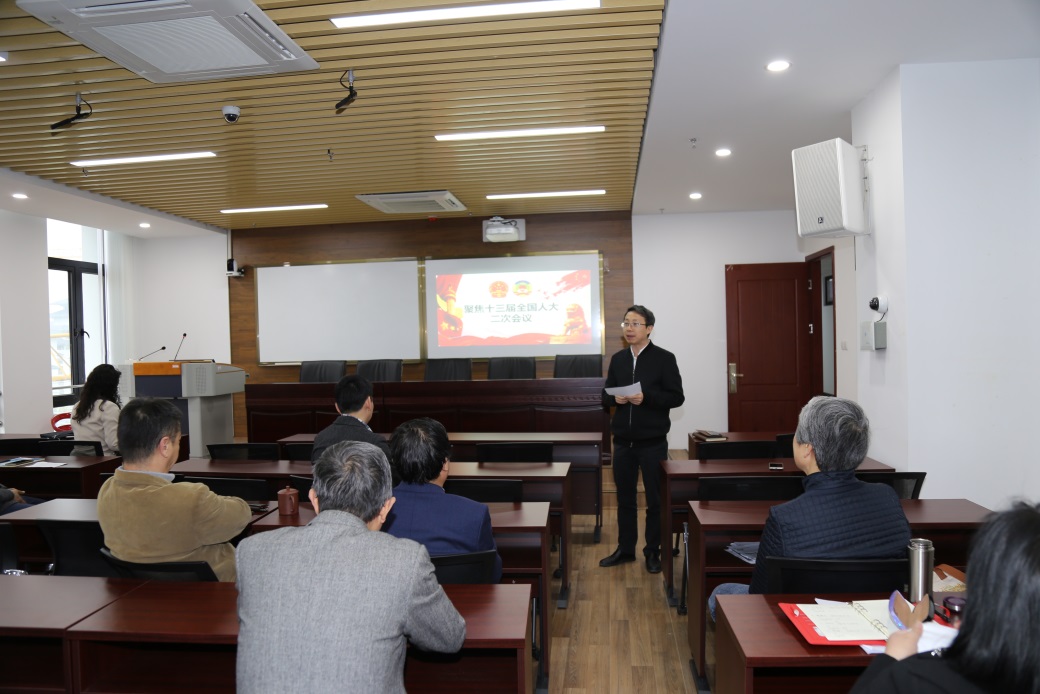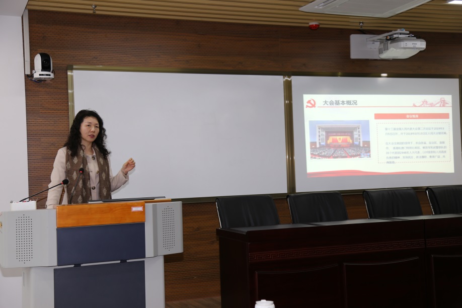 宣讲会上,朱晶简要介绍了十三届人大二次会议及江苏代表团的概况,大会八项主要议程和代表审议履职情况等,重点传达了习近平总书记在会议期间的重要讲话精神。朱晶从政府工作报告的高频词入手,阐述了