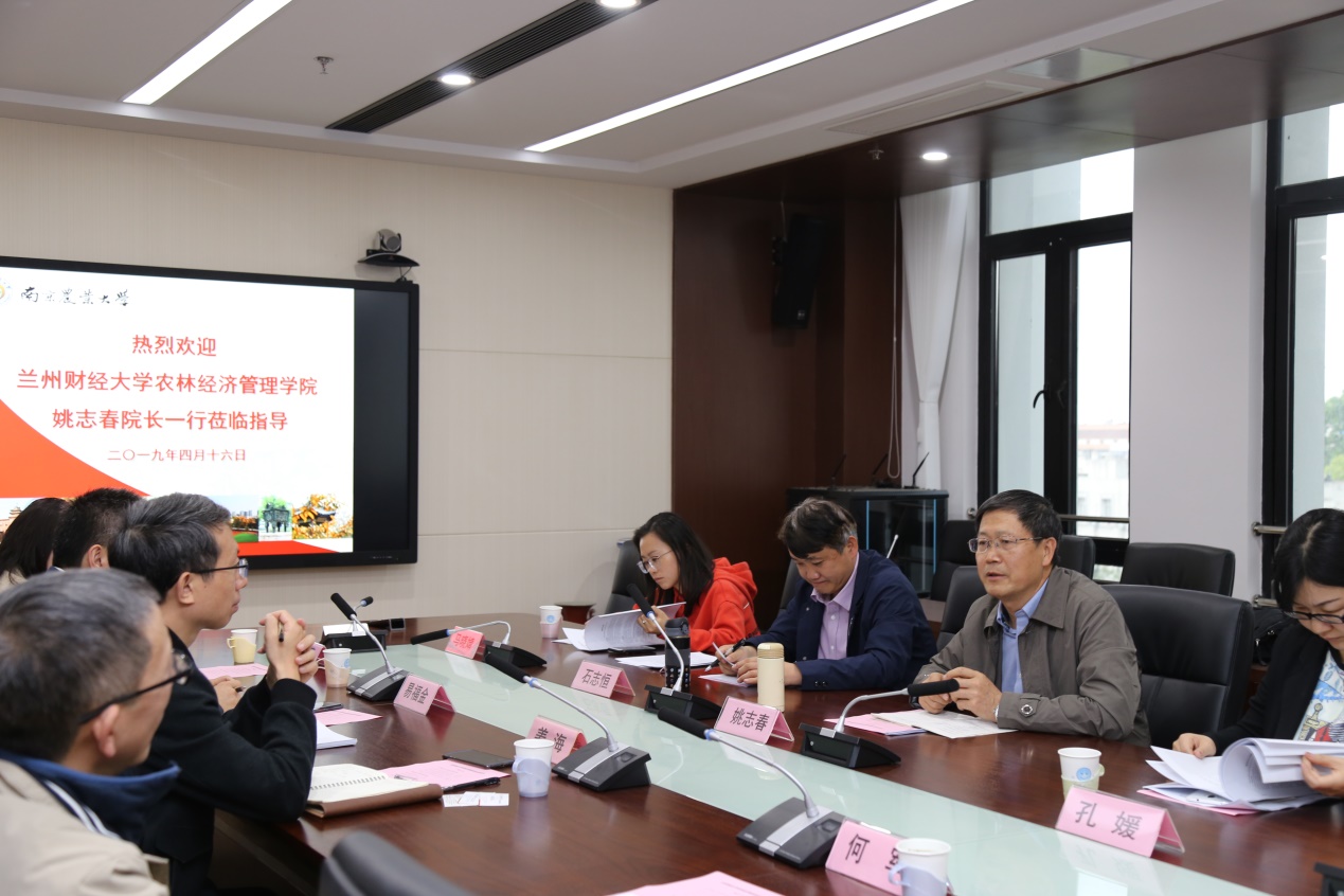 4月16日,兰州财经大学农林白菜导航所有网站网址院长姚志春一行四人来院考察交流。我院党委书记姜海、副院长易福金、管理学系主任何军教授、教学秘书刘莉等参加座谈。
