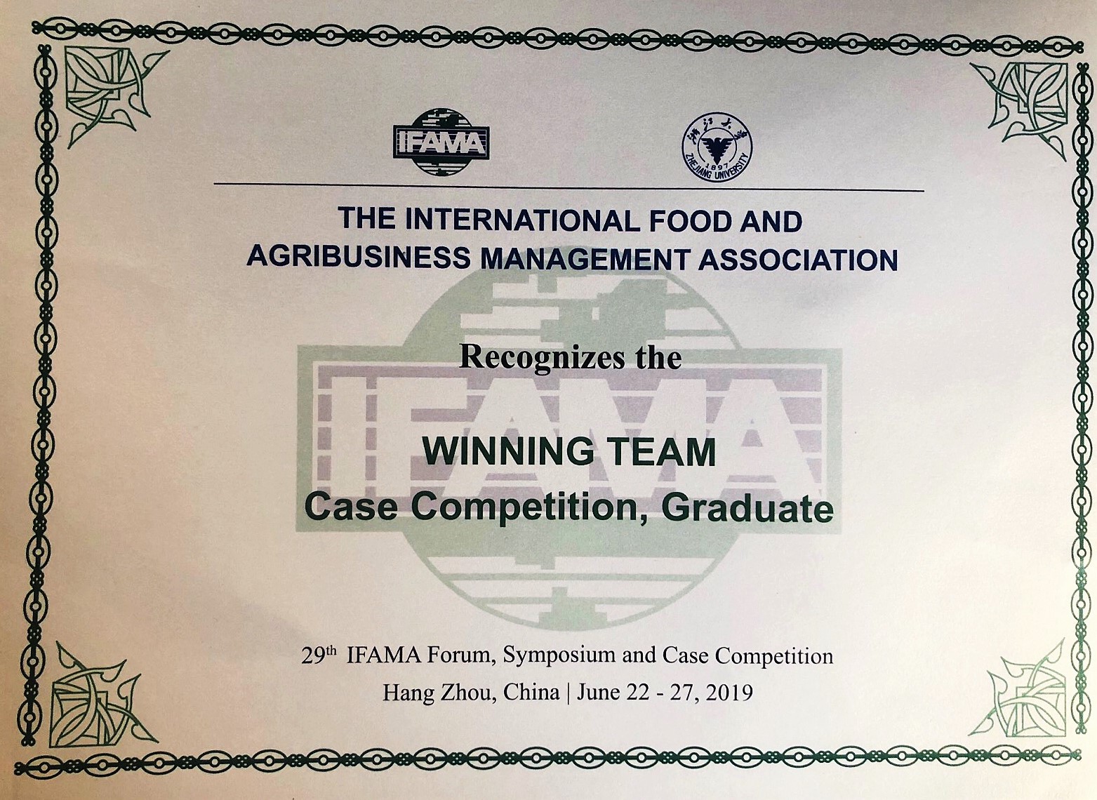 IFAMA是全球最主要的涉农企业管理学会,成立于1990年,总部设在美国得州农工大学农业经济系。第一届IFAMA国际论坛自1991年在美国波士顿召开以来,由世界各国轮流主办,至今已是第29届。其中,案例大赛是学生行业活动的重要部分,由全球范围内著名涉农大学生组成代表队,向全球知名涉农企业的高级管理人员展示快速分析问题和提出解决方案的能力,评委成员包含全球知名农业企业的高级管理人员。IFAMA案例比赛对于培养学生创新意识和提升专业实践能力都具有重要意义,已成为商业案例分析领域的品牌赛事。
